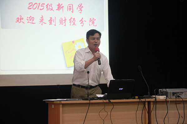 财经分院在学院报告厅举行了2015级新生专业介绍会,财经分院院长李德明教授和任课教师到场⚇,向新同学介绍各专业。