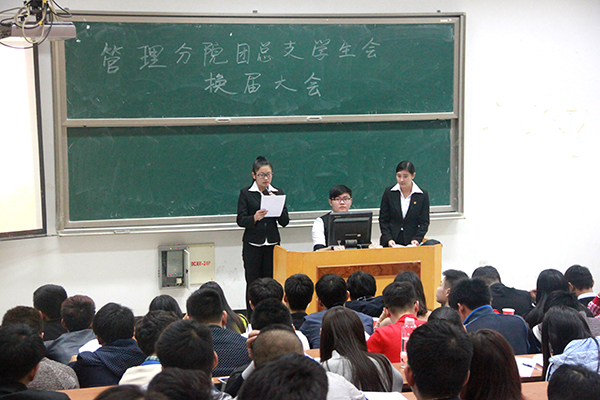 为尽快完善管理分院团总支学生会组织建设,推动各项工作的顺利进行♡,11月5日晚,管理分院团总支学生会换届大会在三号教学楼正式拉开帷幕。