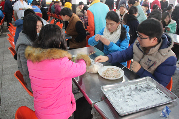 为了在寒冷的冬日将这份温暖传递到校园的每一个地方👏🏼,经过一番忙碌后,院团委学生会的工作人员将煮熟的饺子一份份送给学院师生品尝。