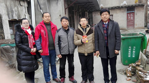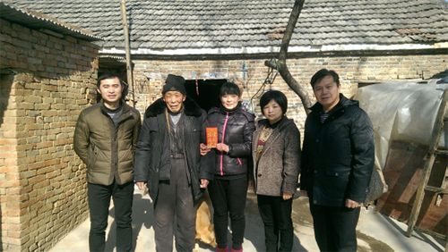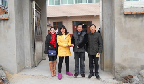 学院副院长兼管理分院院长刘瑞平、管理分院副院长徐家骅、桑慧老师和受助贫困家庭合影