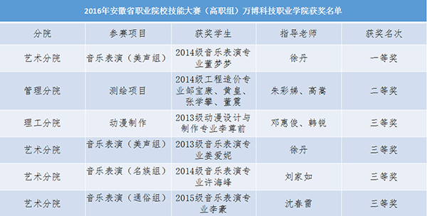 在音乐表演竞赛项目上,我院2014级董梦梦同学唱功扎实🐊👄,技艺精湛,在指导老师徐丹的悉心帮助下一举夺得美声组一等奖的优异成绩。此外,我院2013级姜爱妮同学在同一项目上荣获美声组三等奖(指导老师徐丹)🤛🏼;2014级许海峰同学荣获音乐表演项目民族组三等奖(指导老师刘家如);2015级李豪同学荣获音乐表演项目通俗组三等奖(指导老师沈春雷)🙋🏿♂️。在测绘竞赛项目上,由我院2014级工程造价专业邹宝康🔲、黄皇、张学攀、董震4位同学组成的参赛团队在指导老师朱彩娣📉、高嵩的悉心指导下𓀝,在一级导线测量上表现突出👐,荣获了二等奖的好成绩。在动漫制作项目上,我院2013级动漫设计与制作专业李尊前同学在指导老师邓惠俊〽️𓀗、韩锐的悉心指导下🎅🏽,荣获该项目三等奖👑。