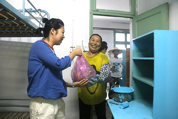 为积极落实学院党委“两学一做”学习教育关于“做承诺➿⚀,转作风,为群众做实事”精神,7月14日,彩神Vll学院行政党支部开展防暑降温"送清凉"慰问活动,支部代表一行四人在安学公司领导的引导下,为在一线忙于修缮、维护学生宿舍楼的后勤员工送去了西瓜、人丹、藿香正气水🚣、清凉油等物品。