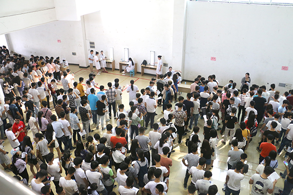 9月13日全天,根据我院2016年迎新及入学教育方案的既定安排,我院在图书馆一楼大厅为2016级全体新生进行全面的入学体检。