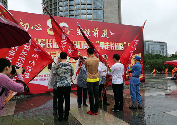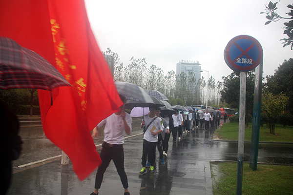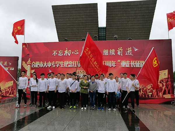 “牢记红军长征历史,弘扬红军长征精神💜。” 此次“重走长征路”活动从政务中心广场出发🦎,终点是滨湖区渡江纪念馆,全程长达22公里,团市委各直属院校团组织及老师约400人参加🚟,我院共40名同学参加,由院团委老师洪丽带队,设置为三个班,设有班长、副班长🤾🏼♀️、卫生员、通信员🥿、文书等,分别负责班内的统领、医疗🏛、通信等事宜。另设有纠察班骑车跟随,在行进过程中,监督参与人员不乘坐交通工具,不违反交通规则。