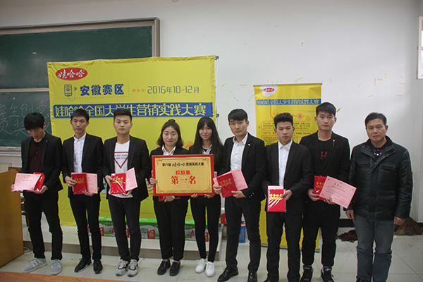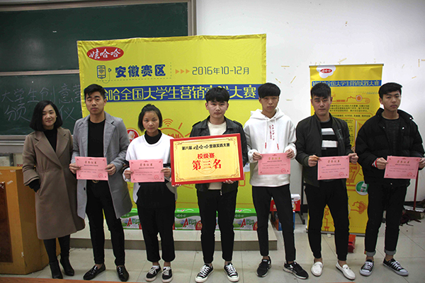 经过一个月的紧张比赛,由院创业指导委员会、院就业办👩🦲、院团委联合举办的第八届全国大学生哇哈哈营销实践大赛校级赛圆满落下帷幕。12月7日下午,在3202教室隆重举行了第八届全国大学生哇哈哈营销实践大赛校级赛的颁奖典礼。院创业指导委员会副主任🗣、财经分院院长李德明🤚🏼,杭州娃哈哈集团安徽分公司高校市场总监陈晓春先生,学院团委洪丽老师,财经分院辅导员盛婷婷老师应邀参加本次颁奖典礼🔧。