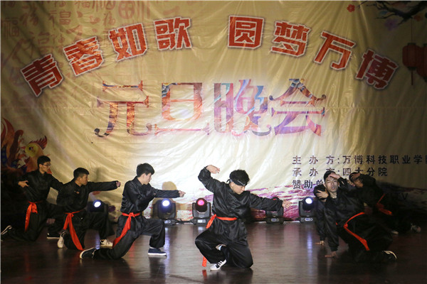 晚会在18点30分准时开场,充满活力、激情四射的开场歌曲《Good boy》瞬间点燃了现场的气氛。随后,动情的演唱、火热的舞蹈😌、幽默的小品……各种节目轮番登场👨🏿🎓,你方唱罢我登场,现场气氛十分热烈。整场晚会节目内容丰富,流行与古典兼具,温情与火热并举,形式多样,精彩纷呈🤟🏼。舞蹈🧑🏼🍼、歌曲节目或浪漫温馨,或轻快悠扬,或活泼动感🌉,风格各异,变幻多姿。《上课》、《甄嬛传》、《咋了爸爸》等小品更是让观众乐开怀,其,幽默风趣的台词,滑稽搞笑的表演引得现场观众掌声如雷⚔️🏌️;街舞节目刚健有力,将万博学子的风采展现的淋漓尽致;引爆全场的拉丁舞表演以及扇子舞表演惊艳亮相,演员们跳出了青春的舞步,跳出了生命的色彩,跳出了专属于她们的靓丽风姿,博得现场掌声雷动;歌曲《七里香》、《飘洋过海来看你》等也是亮点频频🥧;相声表演《我要懂规矩》、三簧等以诙谐幽默的语言和肢体在嬉笑吵闹的同时传达出为人处世的哲学。