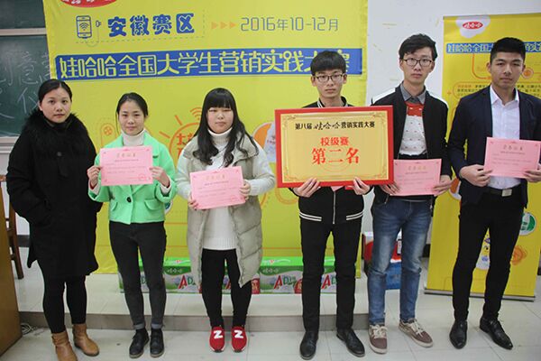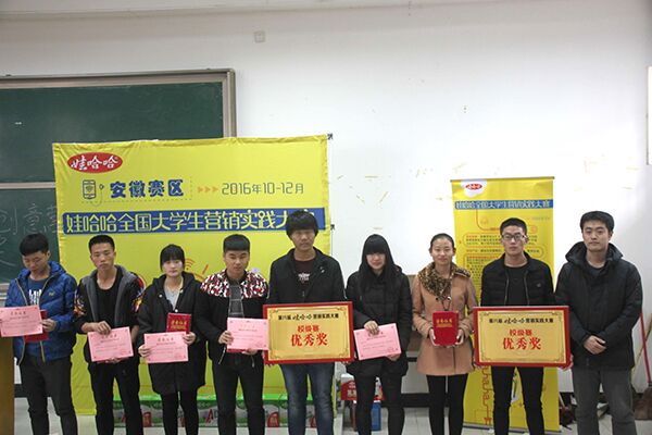 经过一个月的紧张比赛,由院创业指导委员会、院就业办、院团委联合举办的第八届全国大学生哇哈哈营销实践大赛校级赛圆满落下帷幕👨🏻🎓。12月7日下午,在3202教室隆重举行了第八届全国大学生哇哈哈营销实践大赛校级赛的颁奖典礼🤽🏼♀️。院创业指导委员会副主任、财经分院院长李德明💂🏿♀️,杭州娃哈哈集团安徽分公司高校市场总监陈晓春先生,学院团委洪丽老师,财经分院辅导员盛婷婷老师应邀参加本次颁奖典礼。