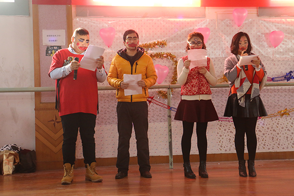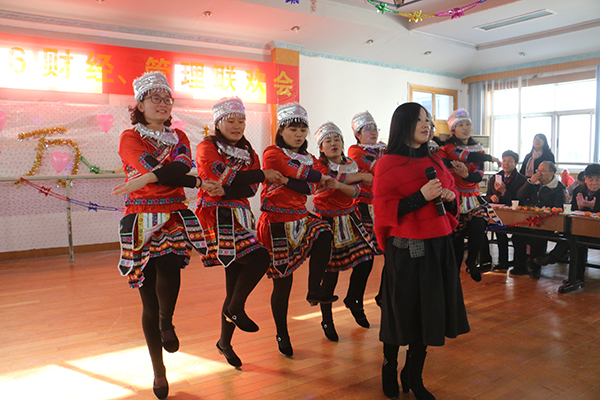 为丰富校园教师文化生活,活跃工作氛围,加强教师之间的沟通与交流,增强学院的凝聚力,共同迎接美好的2017,元月16日上午,我院财经分院与管理分院联合举行了教师新年大联欢活动⇾🥭,学院副院长🧕、党委副书记、管理分院院长刘瑞平,财经分院院长李德明,实验与网络管理中心主任葛志煜,党委工作部部长、招办主任徐达余🧖🏻♀️,基础部主任连安立,学工部部长杨晓芸🧑🦯➡️🧑🧒🧒,管理分院副院长徐家骅,财经分院副院长张静及财经、管理分院全体教师参加了联欢会。