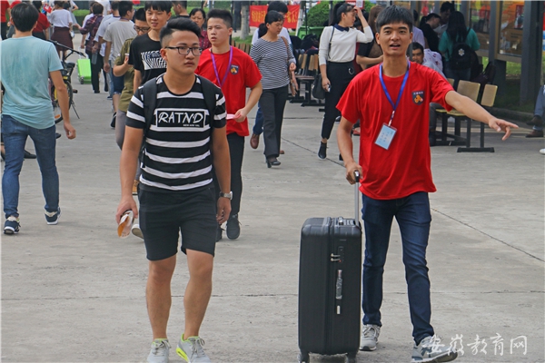 早上7点,迎新工作就进入了紧张而有序的状态,位于教学楼前广场的新生接待处📟,不时迎来一批批洋溢着青春笑容的2017级新生。在新生接待处♥️,工作人员有条不紊地接待着前来报到的新生和家长💌,他们会心的微笑和关切的问候,让新生和家长倍感温暖。