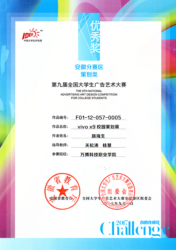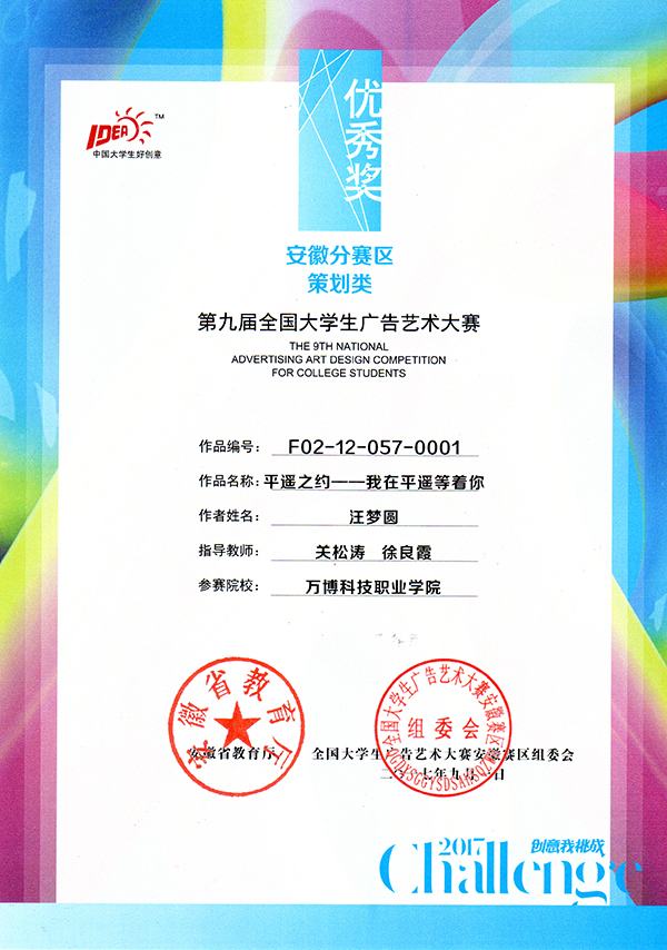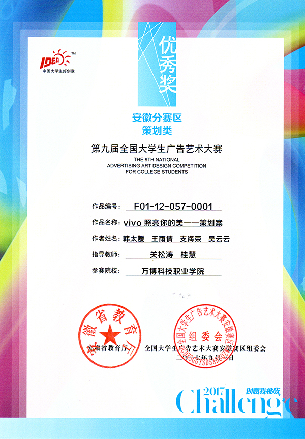 此次比赛🪷,教研室主任关松涛以及桂慧老师指导的2015级广告自主班的路海生同学、2015级广告统招班的韩太媛、王雨倩等同学🤰🏿,关松涛、徐良霞老师指导的2015广告统招班汪梦圆同学分别创作的广告营销策划案均获得大赛的策划类优秀奖🎿;桂慧老师指导的2015广告自主班吴琴同学创作的平面作品(广告语)获得大赛的平面类优秀奖,这是我院师生近10年第一次参与此项比赛,也是零的突破,更是新的起点。