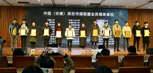 12月30日,我院大学生记者团新媒体中心付裕一行应邀赴合肥工业大学翡翠湖校区参加首届安徽高校新媒体评选颁奖暨工作交流大会🏏,我院大学生记者团当选为高校传媒联盟会员媒体单位🧑🏼🔬。