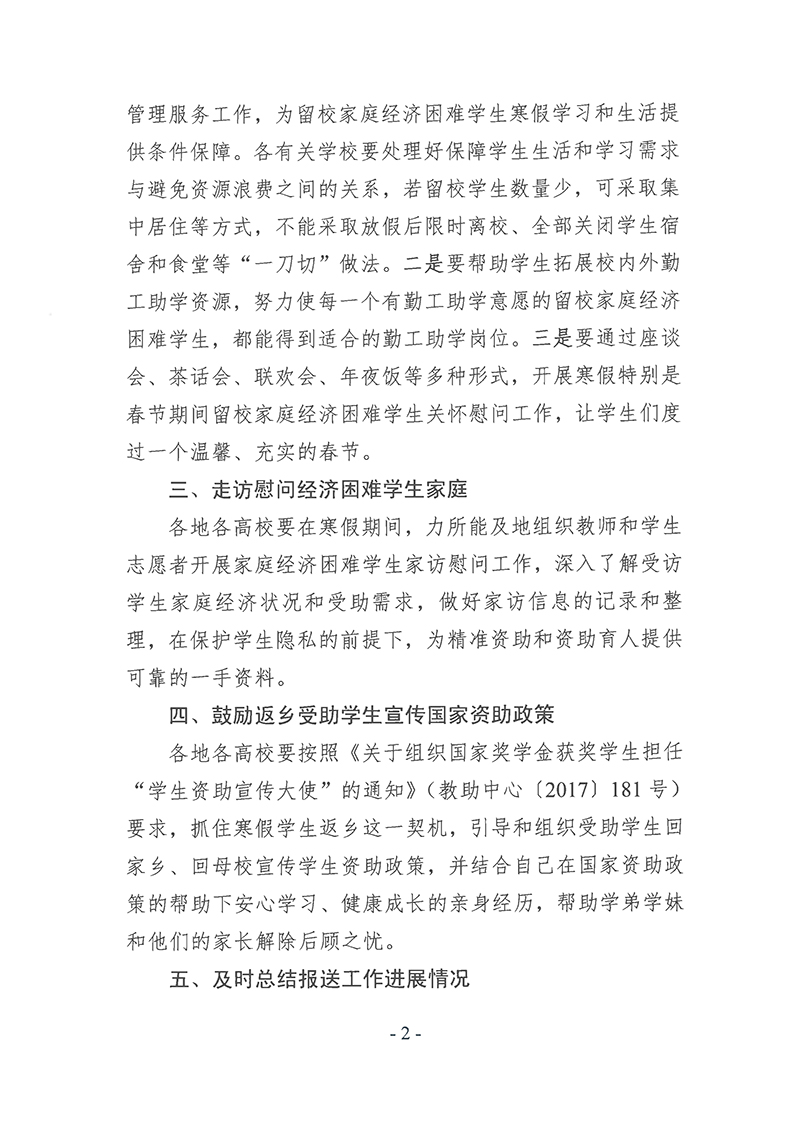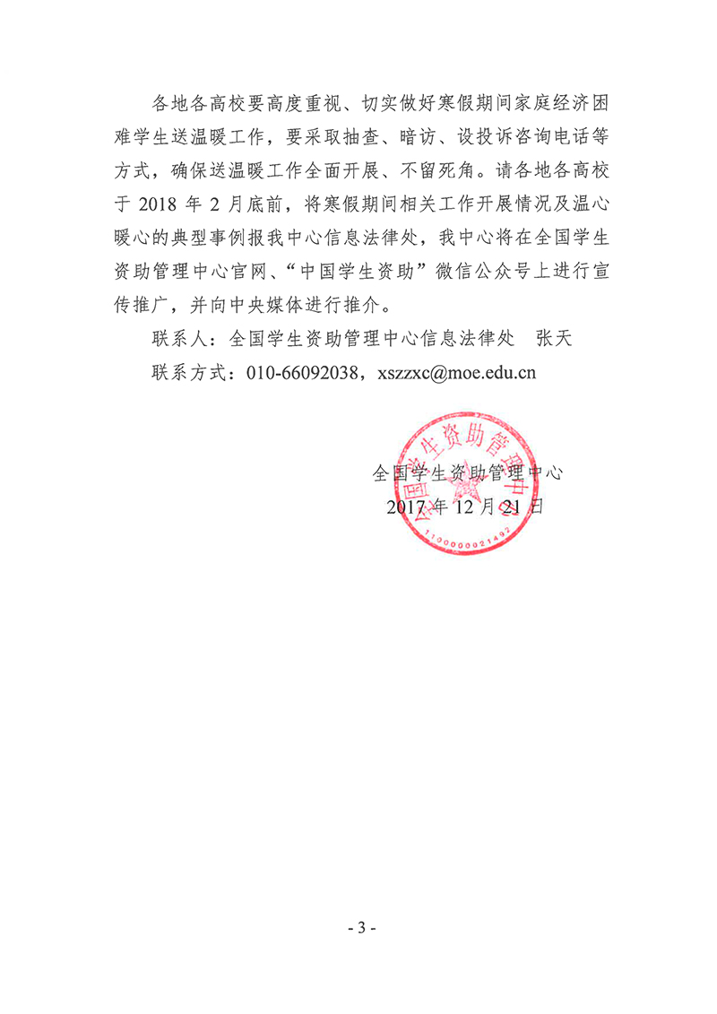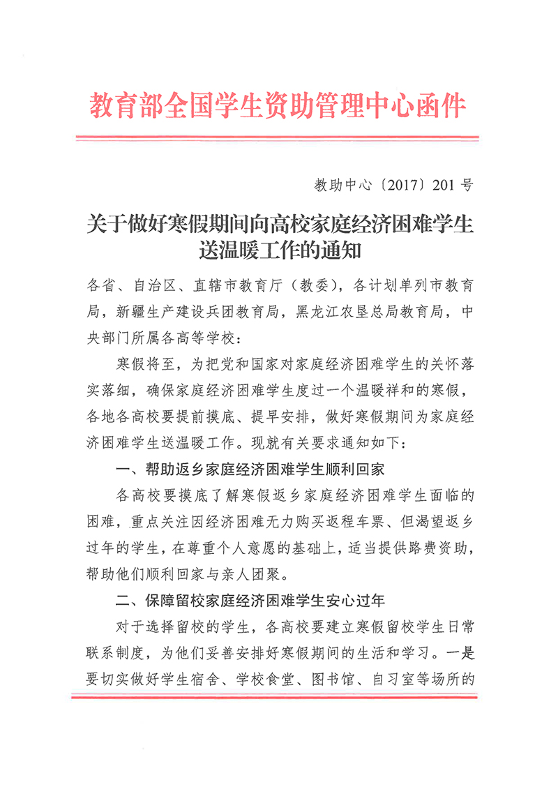 关于做好寒假期间向高校家庭经济困难学生送温暖工作的通知