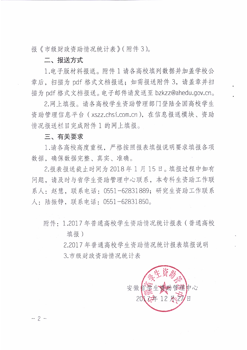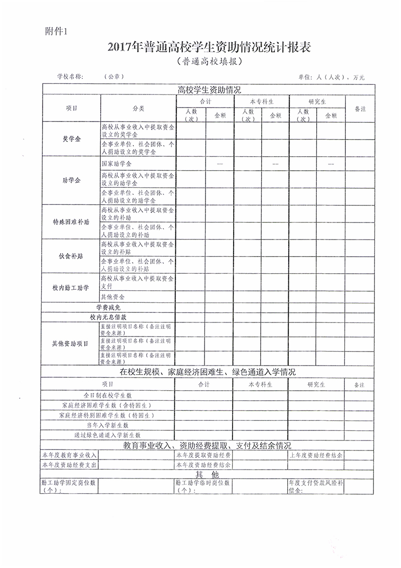 关于报送2017年度普通高校学生资助数据的通知
