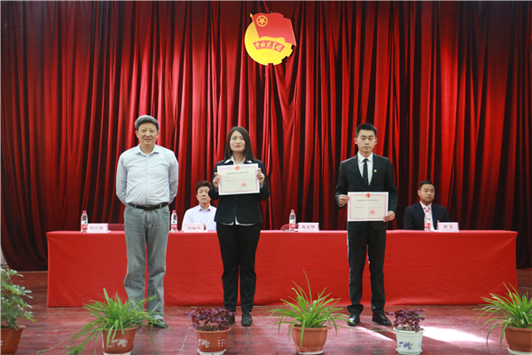 团委副书记周冕为院级优秀团干颁发荣誉证书