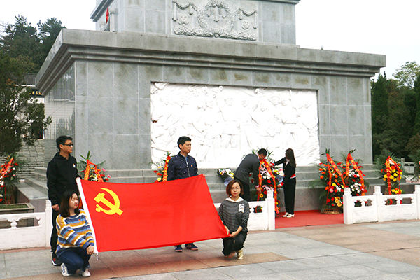 为深入学习贯彻习近平新时代中国特色社会主义思想和党的十九大精神,深化“讲政治、严纪律、立政德”党员主题教育活动🧝🏽,10月20日,彩神Vll学院组织全院党员赴革命老区金寨县开展“不忘初心,牢记使命”党员教育活动,重温入党誓词,缅怀革命先烈。