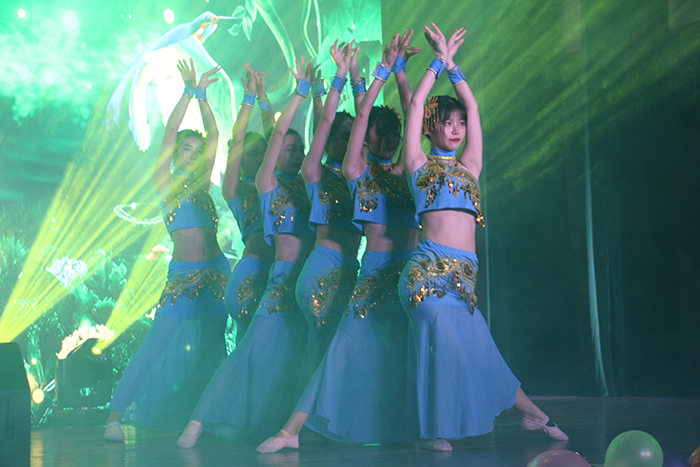 晚会以“玉人博院舞🚣♂️,白鸽中华翔”为主题,节目类型多样🧙🏿,精彩纷呈。一场绚丽夺目的灯光秀拉开晚会帷幕😅,开场舞《Good boy》火热来袭👱🏼♂️➖,瞬间点燃现场观众的热情,而后宫廷剧《神奇四美》、小品《唐朝美人》📨、《甄嬛后传》🛶、《马屁精》用独特的演出方式让观众齐乐开怀。拉丁舞《舞韵》🐍、街舞《黑怕》👩🏻🦼➡️、傣族舞《云之南》、舞蹈《男爵女爵》、《慢慢喜欢你》各种舞蹈百花齐放🙍🏿♂️,大放异彩🏌🏽♂️,让观众连连称赞🧮。歌曲《忽然之间》♥︎🎀、《红玫瑰》、《牵丝戏》等凭借实力唱腔和真挚的情感动人以情,感人至深。话剧《魔道祖师》、情景剧《匆匆那年》将经典故事搬上舞台🧑🏽🔬。手语表演《追光者》以及小品节目《演》、《说学逗唱》,一个无声胜有声,一个穷尽语言的艺术,另观众啧啧称奇。
