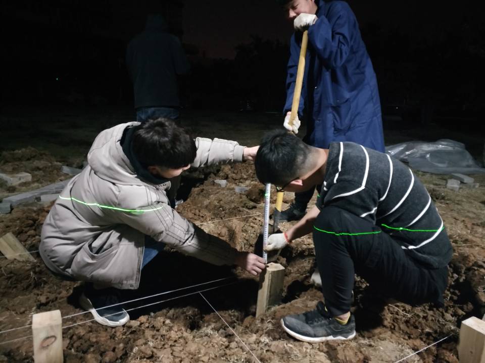 集训期间🧎♂️➡️,参赛同学反复对接施工节点和施工难度及时调整方案,几位指导老师主动放弃休息💍,悉心指导🌛👳🏽♀️。连续参加过2017年👩🏽🦲、2018年该项赛事的代小龙同学无私奉献,在工作之余来校传经送宝,从放线定位😮、标高测量开始,一点一滴帮助他们积累参赛经验。