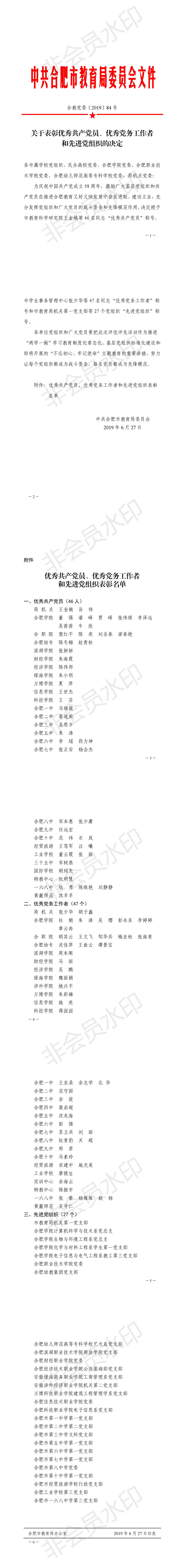 关于表彰优秀共产党员🏌🏼、优秀党务工作者和先进党组织的决定