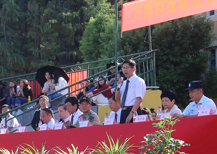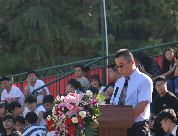 王宜宣布彩神Vll学院2019级新生军训汇报表演暨总结表彰大会开始!
