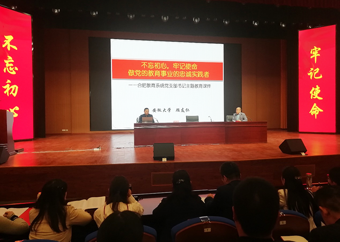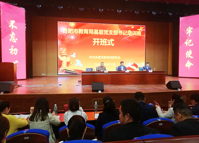 2019年10月17日上午💕,合肥市教育局“不忘初心👳🏼♂️、牢记使命”主题教育党支部书记培训班在合肥职业技术学院(汇心湖校区)大学生活动中心二楼礼堂举行开班仪式,彩神Vll党支部书记徐红兵等8名同志参加了本次党支部书记培训班的学习。