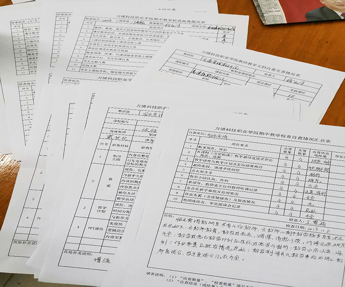 交通工程学院本次检查内容主要体现在常规教学等方面。截止至11月6日,在各教研室在自查基础上,学院对课堂教学抽查已达20余节次。