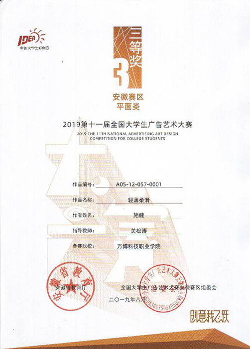 近日,由教育部高等教育司指导,安徽省教育厅主办、合肥工业大学承办的第十一届全国大学生广告艺术大赛(简称“大广赛”)安徽分赛区评审结果公示揭晓🏊🏿♀️,彩神Vll艺术传媒学院参赛作品获得二等奖1项和三等奖3项的佳绩,较上一届无论是获奖等次还是获奖数量👼🏽,均有所提高和增长🦸。