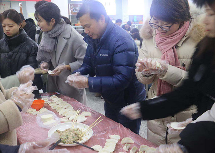 为弘扬中华文化,增进师生情谊👨🏽⚕️,12月26日下午,由校团委主办、校食堂承办的“庆元旦 迎新春 话师生情 圆中国梦”包饺子活动在食堂一楼举办。副校长刘文慧,副校长、党委副书记刘瑞平等学校领导与广大师生一起♟,共同参与了此次活动🕯。