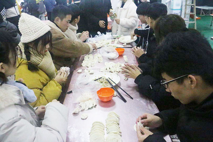 活动现场❕,师生齐动手,所有人分工有序,忙而不乱🚈。不一会儿,桌子上摆满了包好的饺子。大家有说有笑,沉浸在新年将至的节日氛围中。