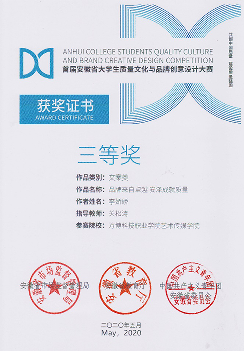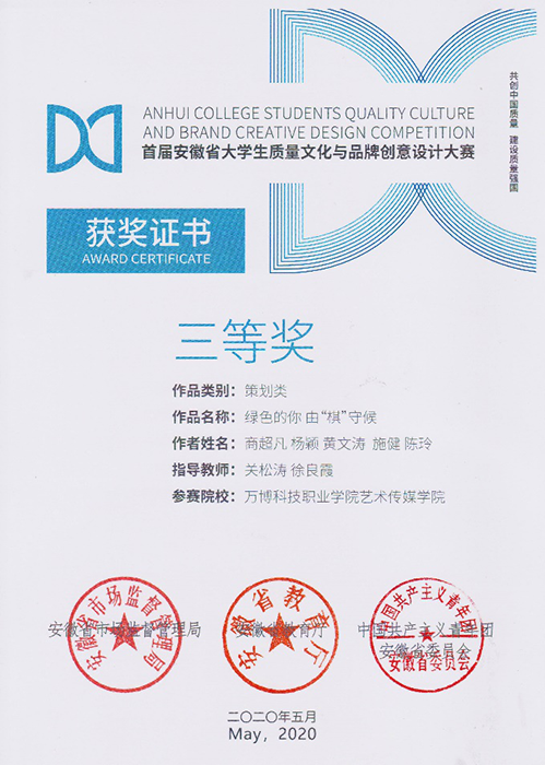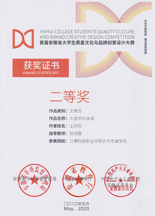 近日,在安徽省市场监督管理局 安徽省教育厅 中国共产主义青年团安徽省委员会关于公布首届安徽省大学生质量文化与品牌创意设计大赛获奖名单的通知中😭,彩神Vll报送的136件参赛作品中,最终斩获大赛一等奖两项🏋🏿♂️、二等奖两项、三等奖五项。其中关松涛老师指导的文案类作品《吃的安心,吃的放心✌🏼😱,虾稻米知你心》和《稻米与龙虾合作,营养与美味交融》分获一等奖;关松涛👇、徐良霞两位老师指导的策划类作品《源启于缘🩶,成于“园”》和徐良霞老师指导的文案类作品《大自然的味道》分获二等奖✊;关松涛、徐良霞两位老师指导的策划类作品《绿色的你,由“棋”守候》,徐良霞老师指导的平面类作品《绿色生态鲜生活》和文案类作品《棋盘塔,生态中的金字塔》,关松涛老师指导的《品牌来自卓越,安泽成就质量》和《质量重于泰山👮🏼♀️,安泽重于质量》分获三等奖👨🏻🔧。关松涛老师被评为首届安徽省大学生质量文化与品牌创意设计大赛优秀指导教师,同时,彩神Vll获得优秀组织单位奖。