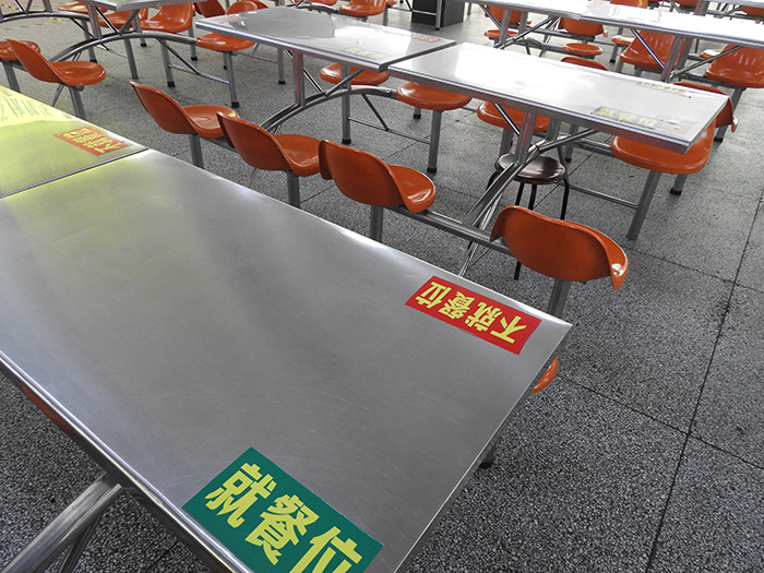 疫情期间🔔,除早中晚三次严格消杀、所有食堂服务人员均佩戴口罩上岗外👲🏼♿,学校食堂为了就餐安全,餐桌上设置了就餐位和非就餐位标识,使前来就餐的师生保持一定安全距离。