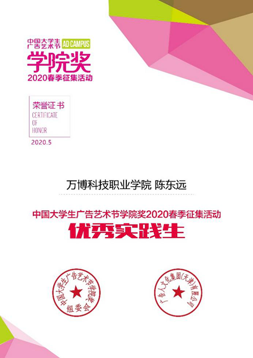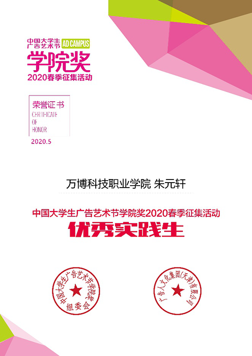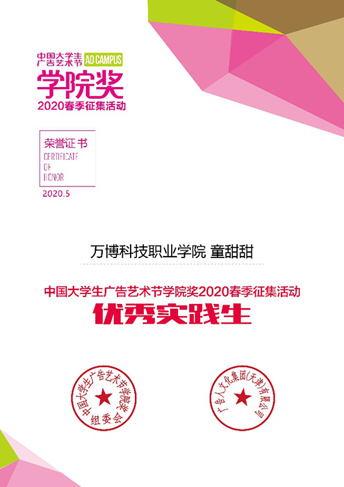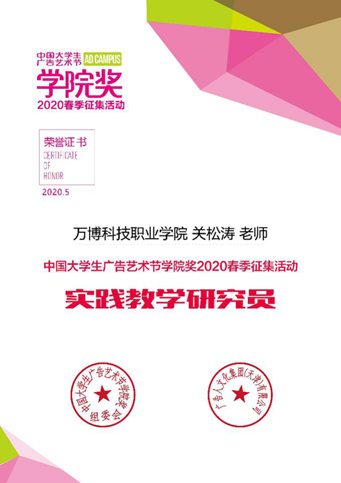经过为期两个多月的积极参与和互动交流,彩神Vll广告传媒教研室主任关松涛获得了由中国大学生广告艺术节学院组委会和广告人文化集团(天津)有限公司颁发的“实践教学研究员”证书🎿,18级广告班的李娇娇🦞、朱元轩👨、张强强、童甜甜等25名同学和19级广告班的孟杨丽、郭亮🐐👩🏻🎤、邬登钰、陈东远等17名同学,共计42名同学荣获“优秀实践生”证书🪘。