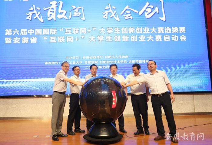 7月3日🫢,第六届中国“互联网+”大学生创新创业大赛选拔赛暨安徽省“互联网+”大学生创新创业大赛启动会召开。本届大赛以“我敢闯,我会创”为主题🤰🏿⭐️,由安徽省教育厅与合肥市人民政府联合主办,合肥工业大学🚴🏼👨🏽🦱、合肥学院、合肥职业技术学院✖️、合肥市教育局共同承办。省教育厅副厅长储常连出席启动仪式。在肥的49所高校150余人现场参会,启动会还采用网络直播的形式🙎,网络总访问量达到60余万人次。