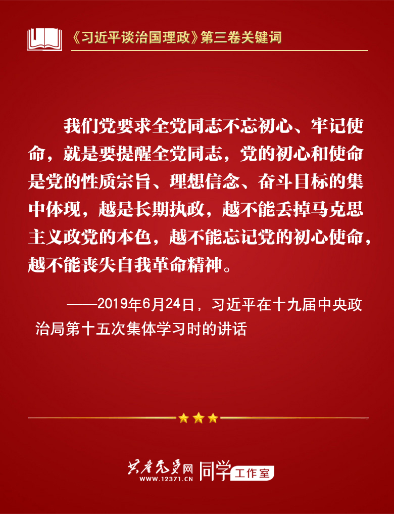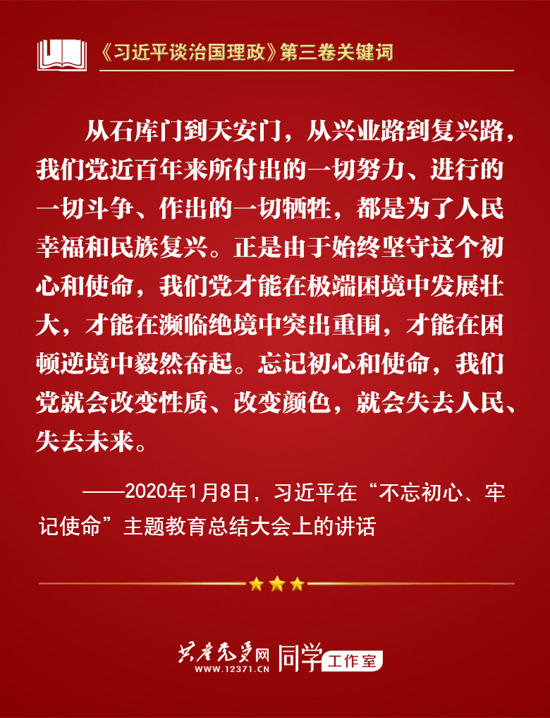 我们梳理习近平总书记部分讲话🚾,带你学习著作中的关键词。今天的关键词是“不忘初心、牢记使命”👨🏼😀。