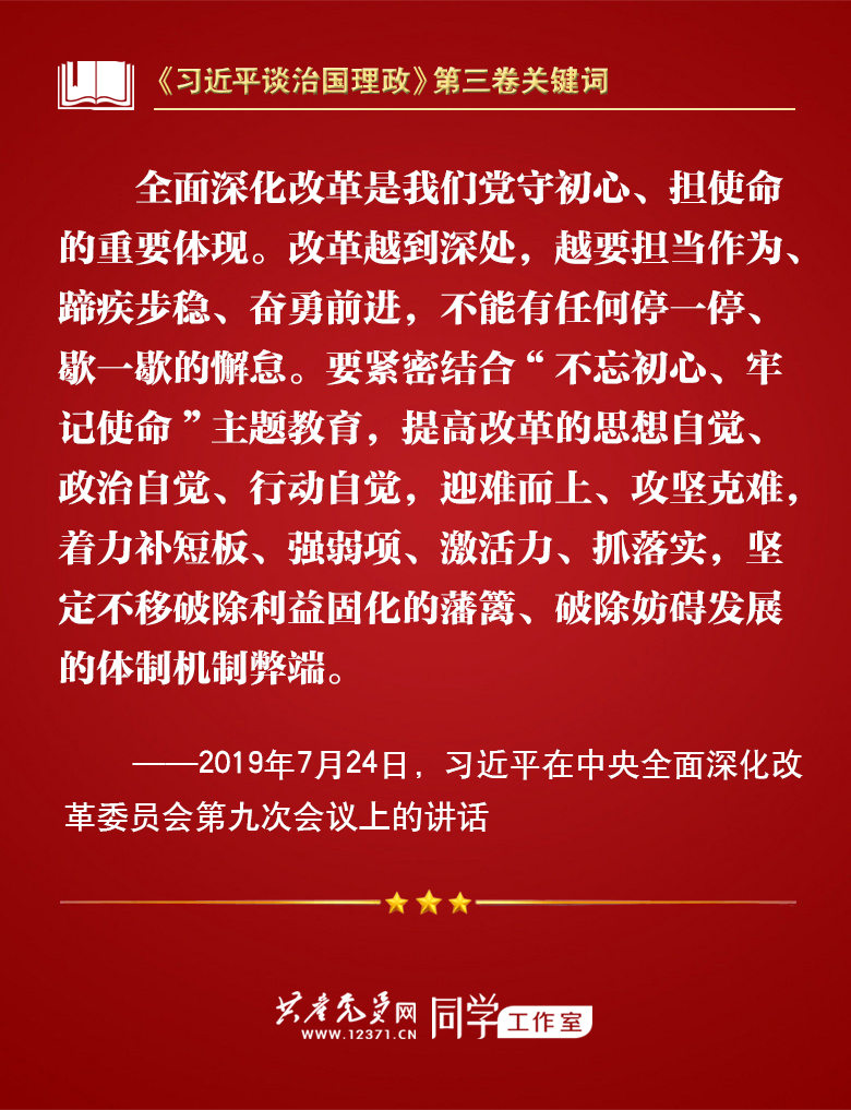 我们梳理习近平总书记部分讲话⛔,带你学习著作中的关键词。今天的关键词是“全面深化改革”。