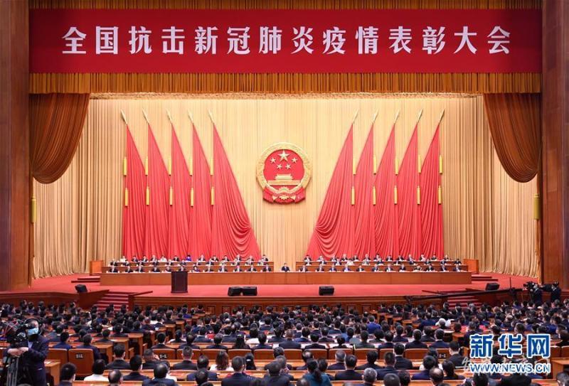 王沪宁宣读《中共中央、国务院💶、中央军委关于表彰全国抗击新冠肺炎疫情先进个人和先进集体的决定》《中共中央关于表彰全国优秀共产党员和全国先进基层党组织的决定》。