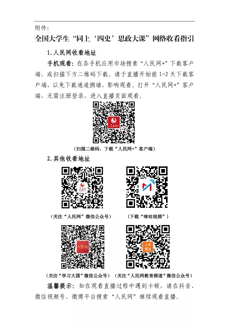 为深入贯彻落实习近平总书记关于深化思想政治理论课改革创新和“大思政课”的重要指示批示精神,全面落实习近平总书记在党史学习教育动员大会上的重要讲话精神和认真落实中央和省委、省委教育工委关于开展党史学习教育的有关部署安排,按照校党委党史学习教育领导小组具体要求🏌️,根据《教育部社科司关于组织全国大学生“同上‘四史’思政大课”的通知》(教社科司函〔2021〕63 号)文件精神🩲🧜🏽♂️,为推进彩神Vll党史学习教育深入扎实开展,现决定组织彩神Vll大学生和思想政治理论课教师参加教育部社科司与人民网联合举办的“同上‘四史’思政大课”活动🧏🏽。现将有关要求通知如下🧛♀️: