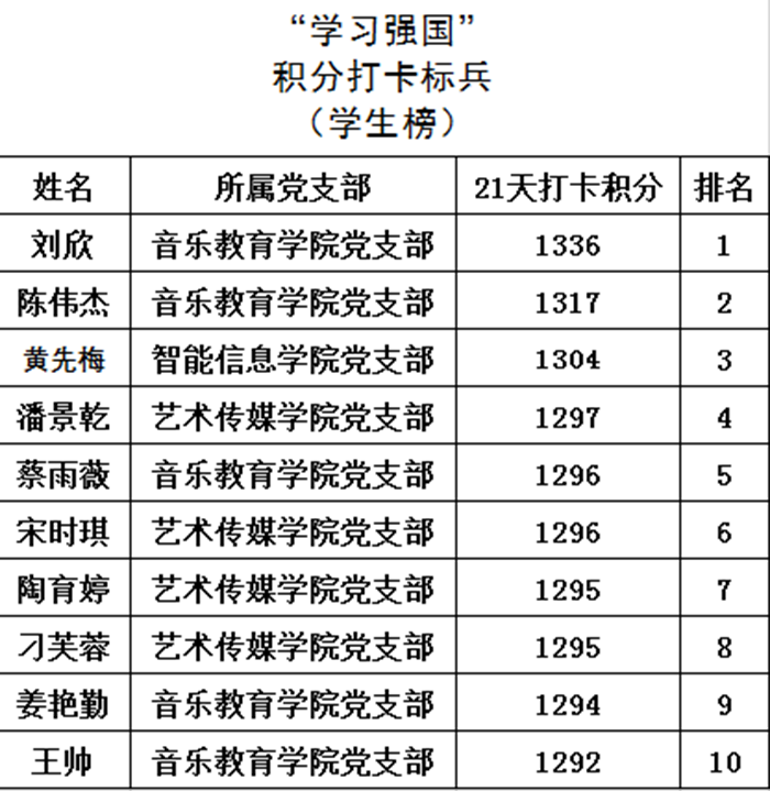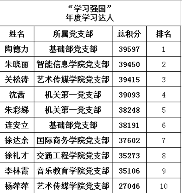 据介绍,结合“学习强国”平台👩🏿🏭,5月17日后,校党委对参赛学员的打卡期累计积分、支部学员参与度等指标进行综合考量🤸,最终确定了个人及团体获奖名单,并产生“年度学习达人”称号10人,“积分打卡标兵”教职工和学生各10人,“活跃党支部”称号5个🚵🏿。