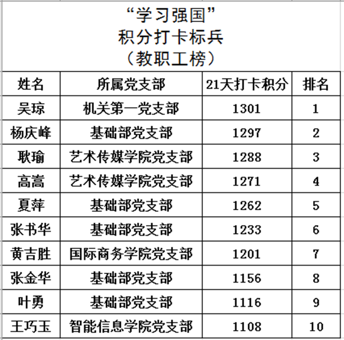 原来👃,从4月27日起至5月17日🍱,校党委号召各党支部“学习强国”平台的注册学员🤼♂️,在此期间坚持学习,通过“学习强国”21天积分赛🚭,争当学史悟思的标兵、增信崇德的标兵、为民办事的标兵、勇开新局的标兵,以实际行动和优异成绩庆祝建党100周年。