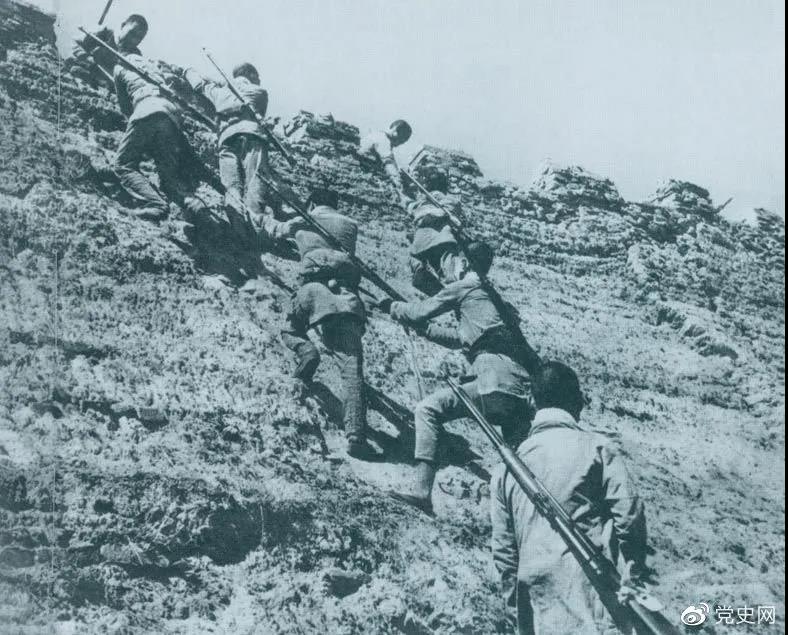 1945年6月25日,八路军冀中部队攻克河北献县🦻。图为部队奋勇攀登城墙。