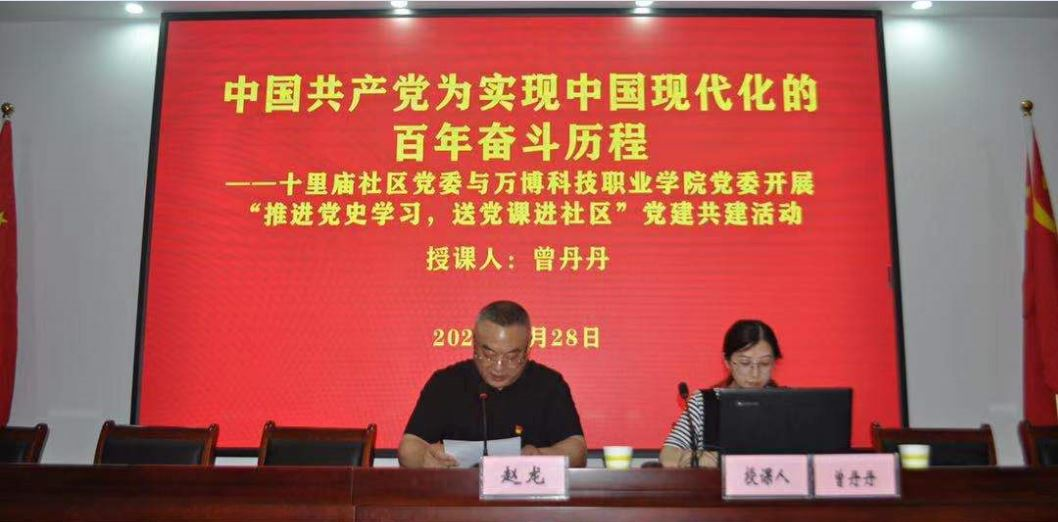 为庆祝中国共产党建党100周年🌈🍈,推进党史学习教育,2021年6月28日📵,彩神Vll学院党委携手十里庙社区党委,于6月28日下午开展以“推进党史学习✍🏽,送党课进社区”为主题的党建共建活动✏️👍🏼。活动由基础部党支部牵头落实,思政课党员教师曾丹丹授课🧎🏻。