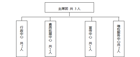2. 工作机构架构为“主席团+工作部门”模式,未在工作部门以上或以下设置“中心”、“项目办公室”等常设层级。 |