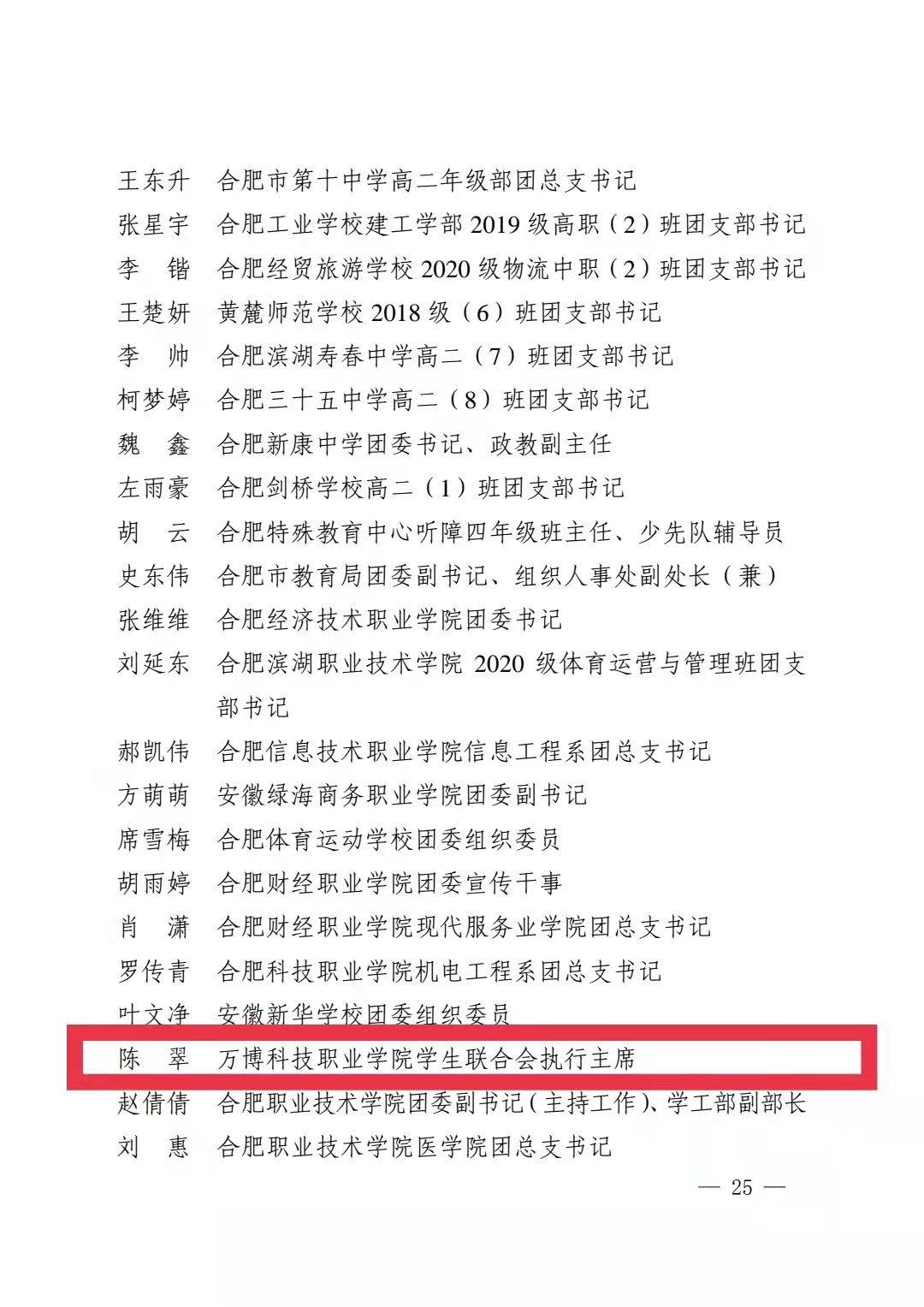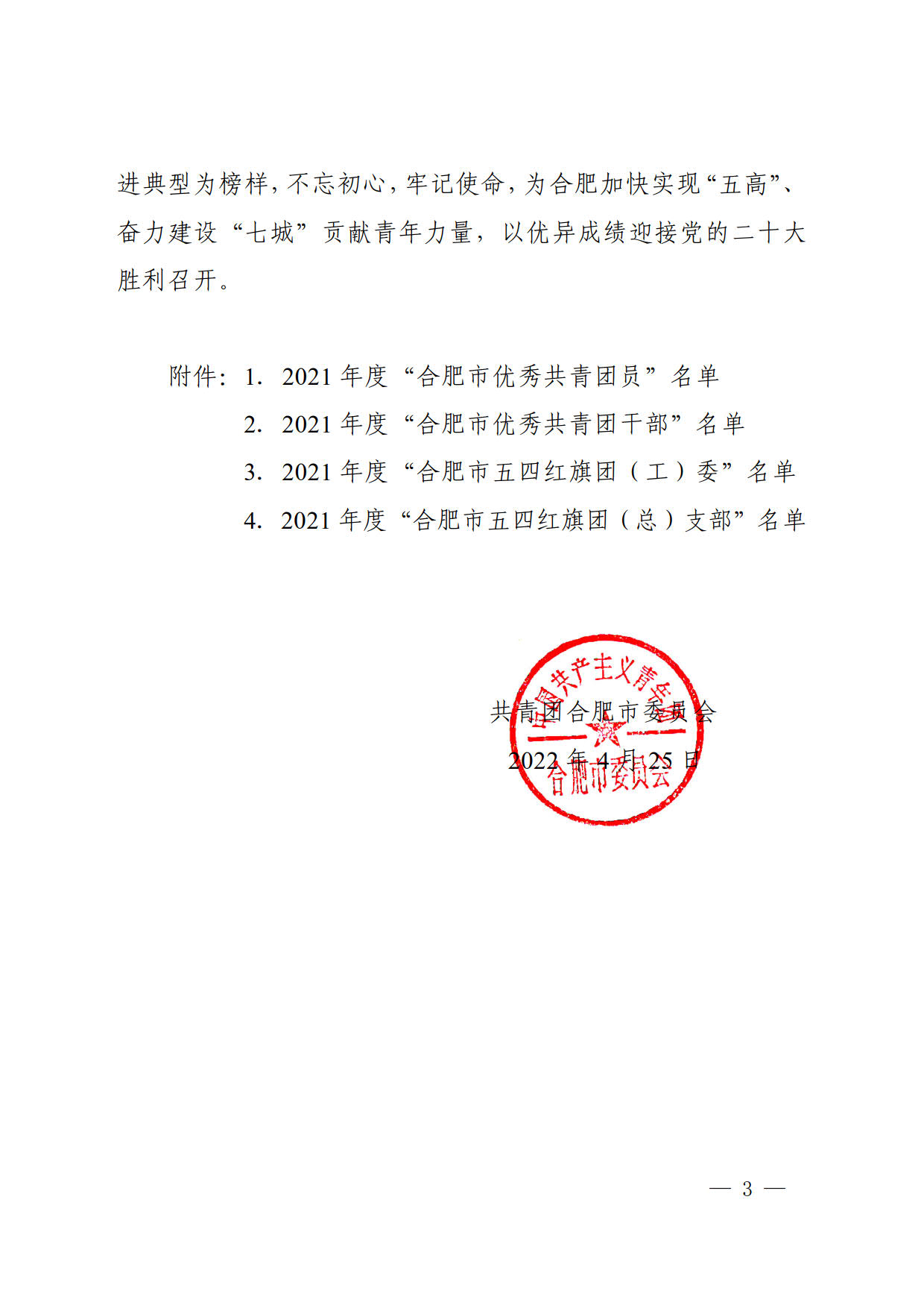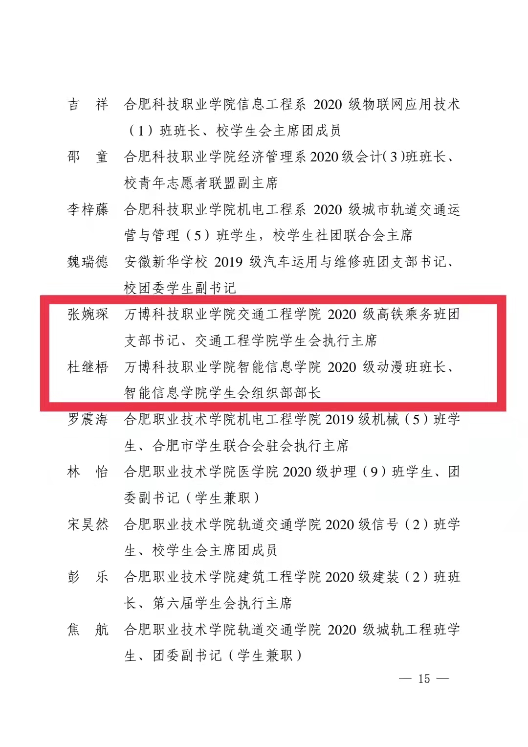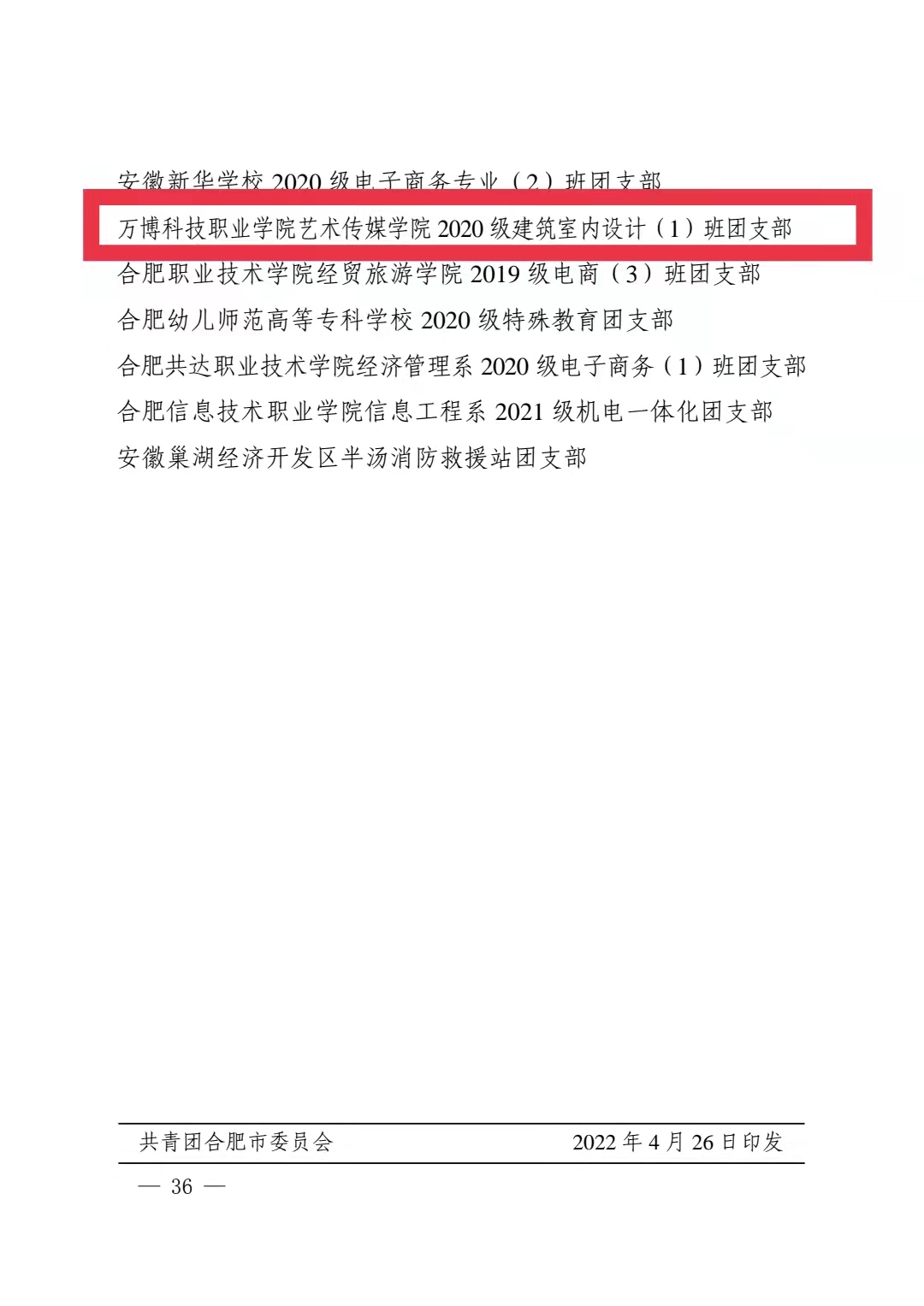 近日🏄🏽♀️,共青团合肥市委员会为表彰先进、树立典型,激励广大团员、团干部和各级团组织奋发有为,发挥先锋模范作用,对2021年度工作实绩突出的团员、团干部和各级团组织予以表扬🧘🏽,彩神Vll张婉琛、杜继梧获2021年度“合肥市优秀共青团员”荣誉称号🧔♂️;陈翠获2021年度“合肥市优秀共青团干部”荣誉称号;艺术传媒学院2020级建筑室内设计(1)班获2021年度“合肥市五四红旗团(总)支部”荣誉称号🏗。