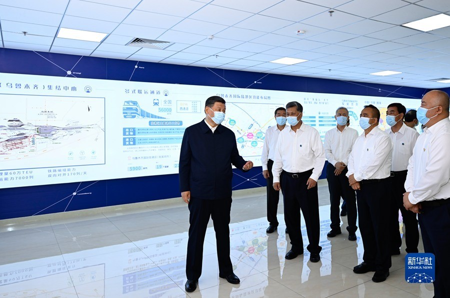 7月12日至15日🏌🏻♀️,中共中央总书记、国家主席、中央军委主席习近平在新疆考察🤲。这是12日下午,习近平在乌鲁木齐国际陆港区考察。新华社记者 李学仁 摄