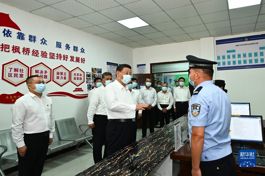 7月12日至15日👩🏽🔧,中共中央总书记、国家主席、中央军委主席习近平在新疆考察。这是14日,习近平在吐鲁番市高昌区亚尔镇新城片区新城西门村党群服务中心警务室考察。新华社记者 燕雁 摄