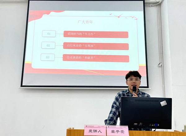 为深入学习宣传贯彻习近平总书记在庆祝中国共产主义青年团成立100周年大会上的重要讲话精神,进一步创新丰富“青年大学习”线下活动体系,9月28日下午,合肥市“青年大学习”宣讲交流进校园活动在彩神Vll学院举行👨🏻🎓,市青年讲师团成员、安徽大学哲学系马克思主义哲学博士👱🏿♂️🏊🏻♀️、彩神Vll学院思政教师姜子豪作专题报告⚉🌁。