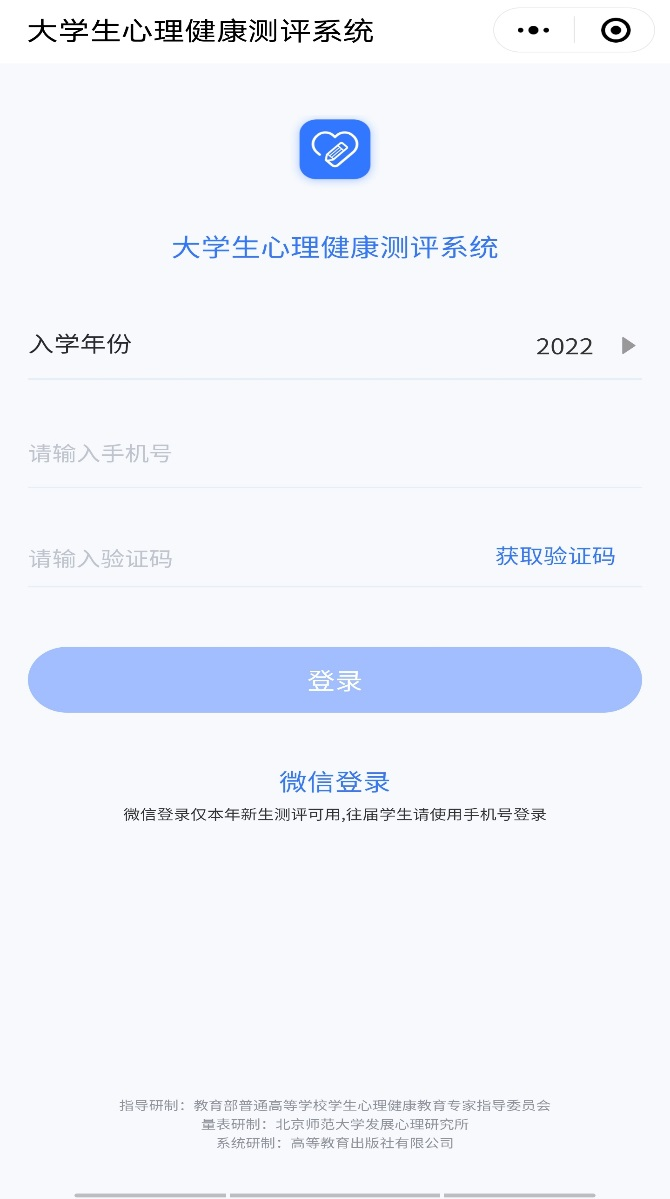第一步🦹♀️🤛🏻:手机微信扫描二维码登陆进入,或直接在微信小程序里搜索小程序“学生心理测评平台”