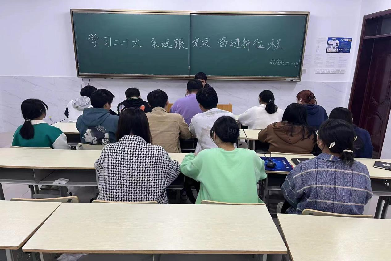 2022年10月26日晚7时,彩神Vll学院艺术传媒学院团总支部组织各班级团支部在教室学习党的二十大精神。各班级团支部静心学习,严谨认真。