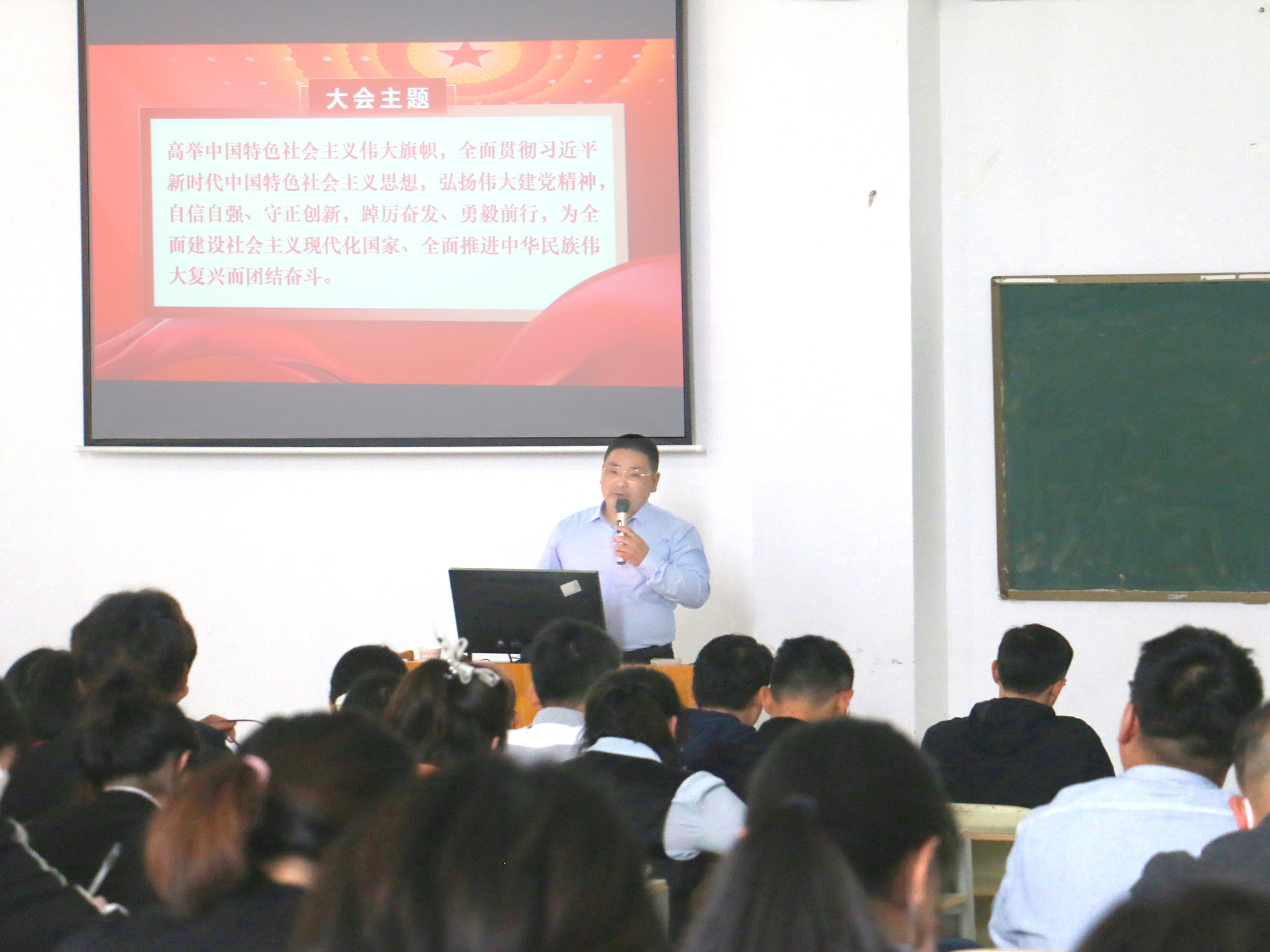 葛守松紧密围绕党的二十大报告,从“党的二十大的重要意义”、“过去五年的工作和新时代十年的伟大变革”👨👨👧、“马克思主义中国化时代化”❣️、“中国式现代化”、“全面建设社会主义现代化国家的目标任务”↪️👷、“坚持党的全面领导和全面从严治党”、“应对风险挑战”、“学习宣传贯彻党的二十大精神”等八个方面展开宣讲🎢,为与会人员详细解读了党的二十大报告的深刻内涵。