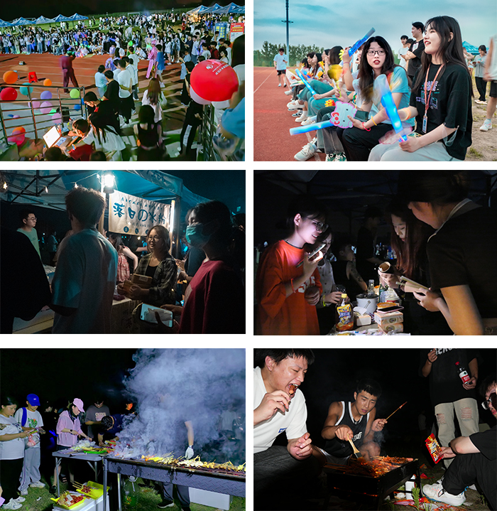 动人的音符、优美的舞姿,同学们跟随节奏挥动荧光棒🅱️、欢呼呐喊📨,现场无处不涌动着青春的活力气息♾,烧烤架火力全开,每个角落都氤氲着烟火的温度🙍🏽🛞。同学们听着音乐的节拍,吃着美味的烧烤,逛着夜市跳蚤市场,在灯海簇拥与人声鼎沸中感受脉搏与音乐的同频、听觉与味觉碰撞的盛宴💹⚒。活动现场气氛热烈💇🏻,不绝于耳的掌声和呐喊声响彻整个校园🦹🏼♂️,师生们一共享受着这独特校园美食节的喜悦。