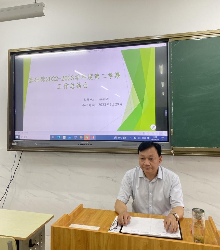 6月29日下午,基础部在1505教室召开2022-2023学年第二学期部门工作总结会议👷🏽,基础部全体教师参加会议,会议由基础部负责人徐红兵主持。